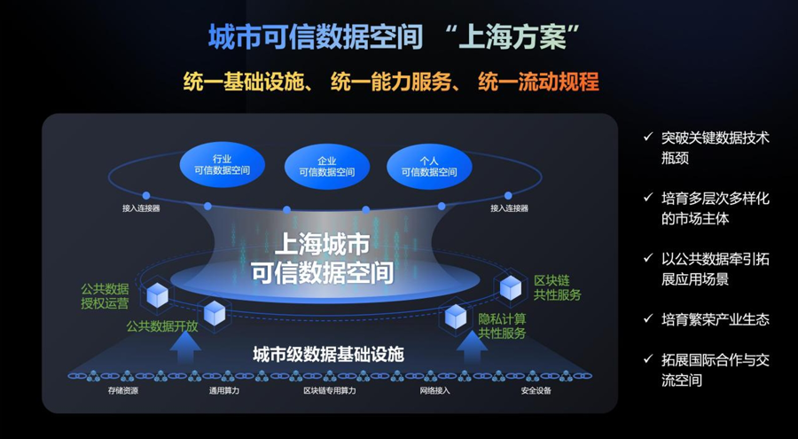 记者还了解到,上海城市可信数据空间鼓励行业龙头企业或者产业联盟建立运营属于自己的行业数据空间,包括但不限于金融风控、医疗科研、智能制造等领域。另悉,该空间是全国数据流通利用大市场的有机组成部分,这意味着,上海企业可在“家门口”看到并合规使用来自全国的数据产品,同时也能将自己的数据服务发布到全国渠道,共享广阔市场机遇。
